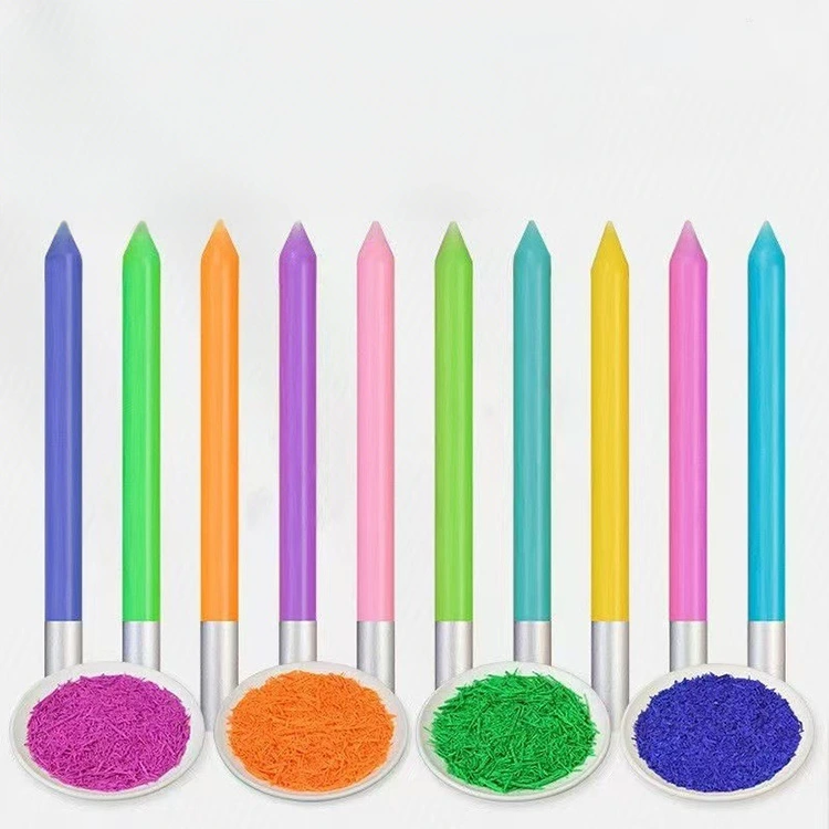 Zagotavljamo jasna in znanstvena navodila za odmerjanje za naše barvilo za filamentne sveče: priporočena dodana količina se giblje od 0,1 % do 0,3 % (kar ustreza enemu do trem na tisoč skupne teže voska). To natančno območje odmerjanja je oblikovano na podlagi obsežnih testov, da se zagotovi optimalen barvni učinek, hkrati pa se izognejo škodljivim učinkom na delovanje sveč. Če dodate 0,1% do 0,3% barvila, lahko dosežete svetlo, enakomerno in nasičeno barvanje; pretiran dodatek nad 0,3 % ni priporočljiv, saj lahko vpliva na stabilnost gorenja sveč in povzroči celo rahel učinek zaviranja gorenja. Za uporabo morajo uporabniki le odrezati ustrezno dolžino filamentnega barvila glede na skupno težo voska in želeno barvno globino, ga dodati stopljenemu parafinskemu vosku in nežno mešati nekaj sekund – filamentno barvilo se bo hitro raztopilo in enakomerno razpršilo, kar bo učinkovito zaključilo postopek barvanja.