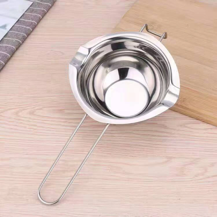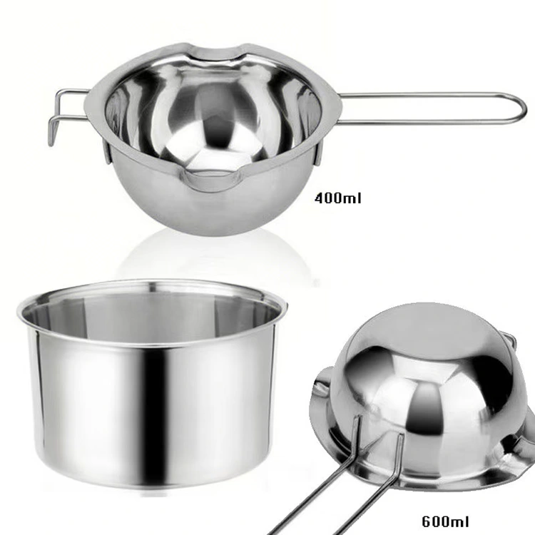 Zagotavljamo raznolike specifikacije za izpolnjevanje različnih potreb uporabe, kar se lahko jasno odraža v videzu izdelka: notranji lonec je opremljen z vgrajenim ročajem iz nerjavečega jekla 304 za enostavno držanje in prenašanje, z elegantno in kompaktno obliko, ki se popolnoma prilega zunanjemu loncu, na voljo v dveh prostorninah – 400 ml (primeren za taljenje majhnih serij) in 600 ml (primeren za srednje velike sestavine). Zunanji lonec, zasnovan za ogrevanje v vodni kopeli, ima dve možnosti velikosti, ki se popolnoma ujemajo z notranjim loncem: 14 × 9,5 cm (premer × višina) s prostornino 1200 ml in 16 × 10 cm (premer × višina) s prostornino 1600 ml, kar zagotavlja zadostno količino vode za stabilno ogrevanje, hkrati pa ohranja urejen in eleganten splošni videz.